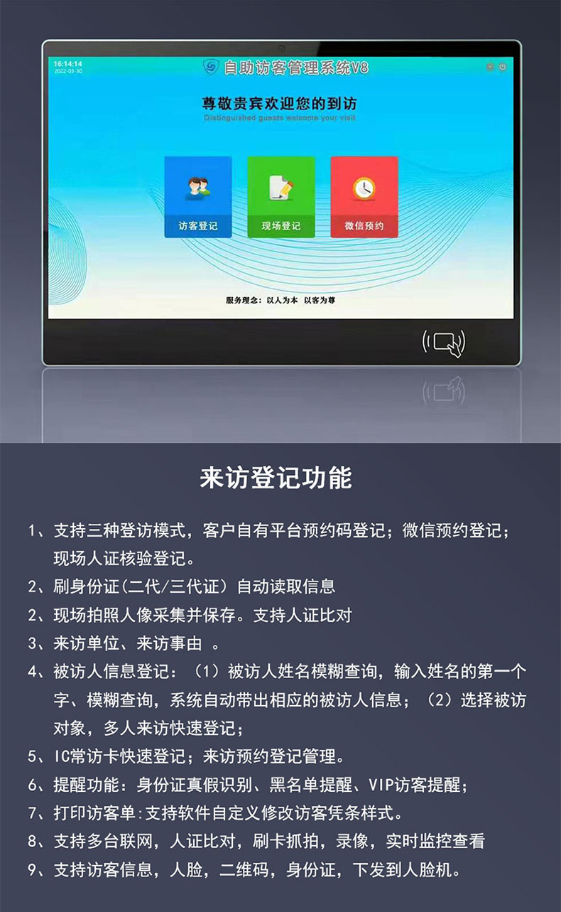 多聯云數據中心采用:訪客機+人臉識別機