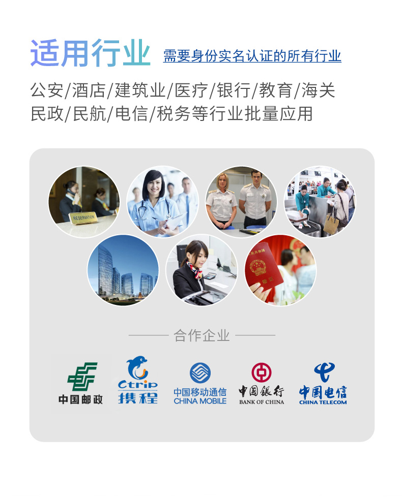 1, 金融系統(tǒng):卡戶,銷戶業(yè)務辦理,客戶身份核驗。 2, 公安系統(tǒng):身份證申/換領,變更住址,人口管理,出入境等。